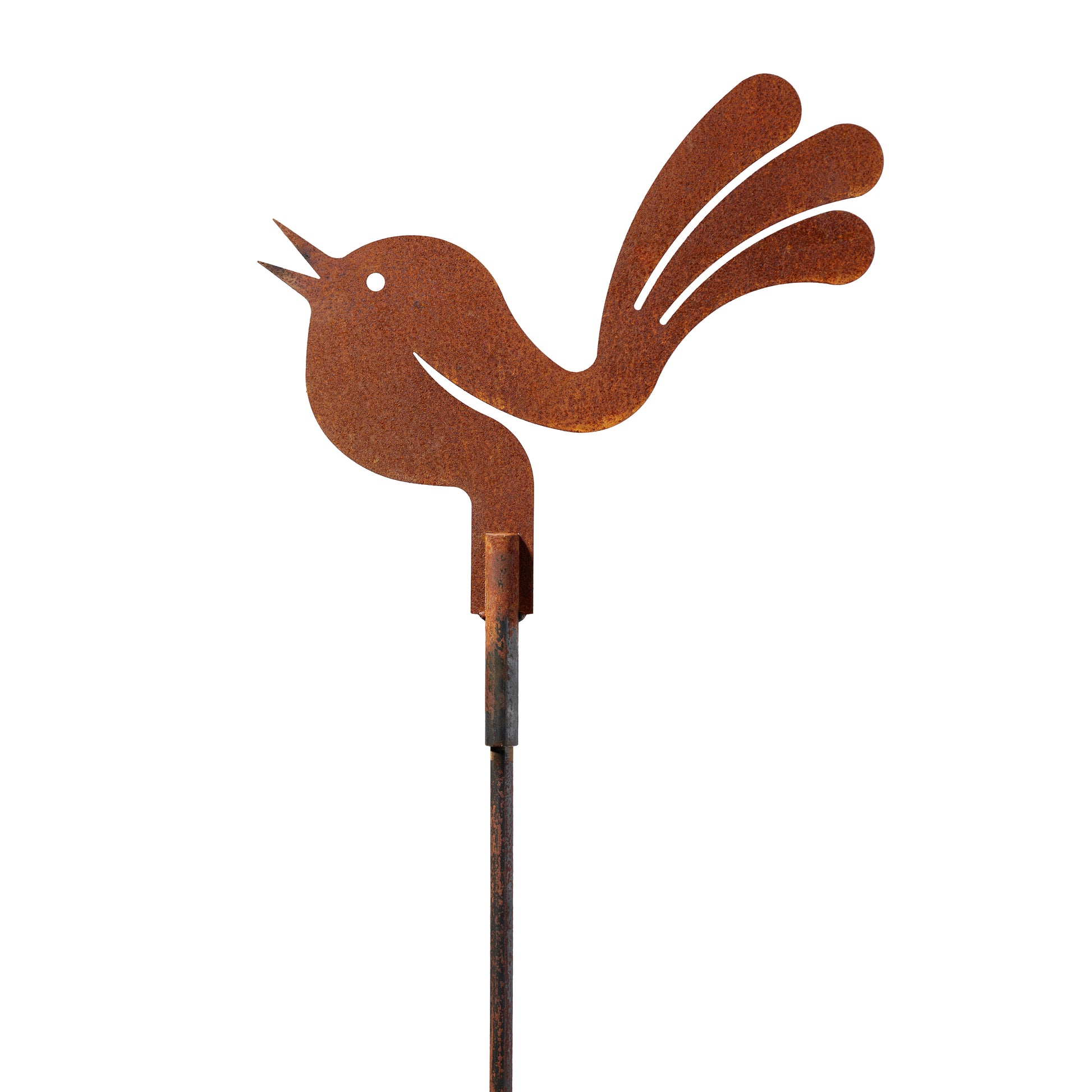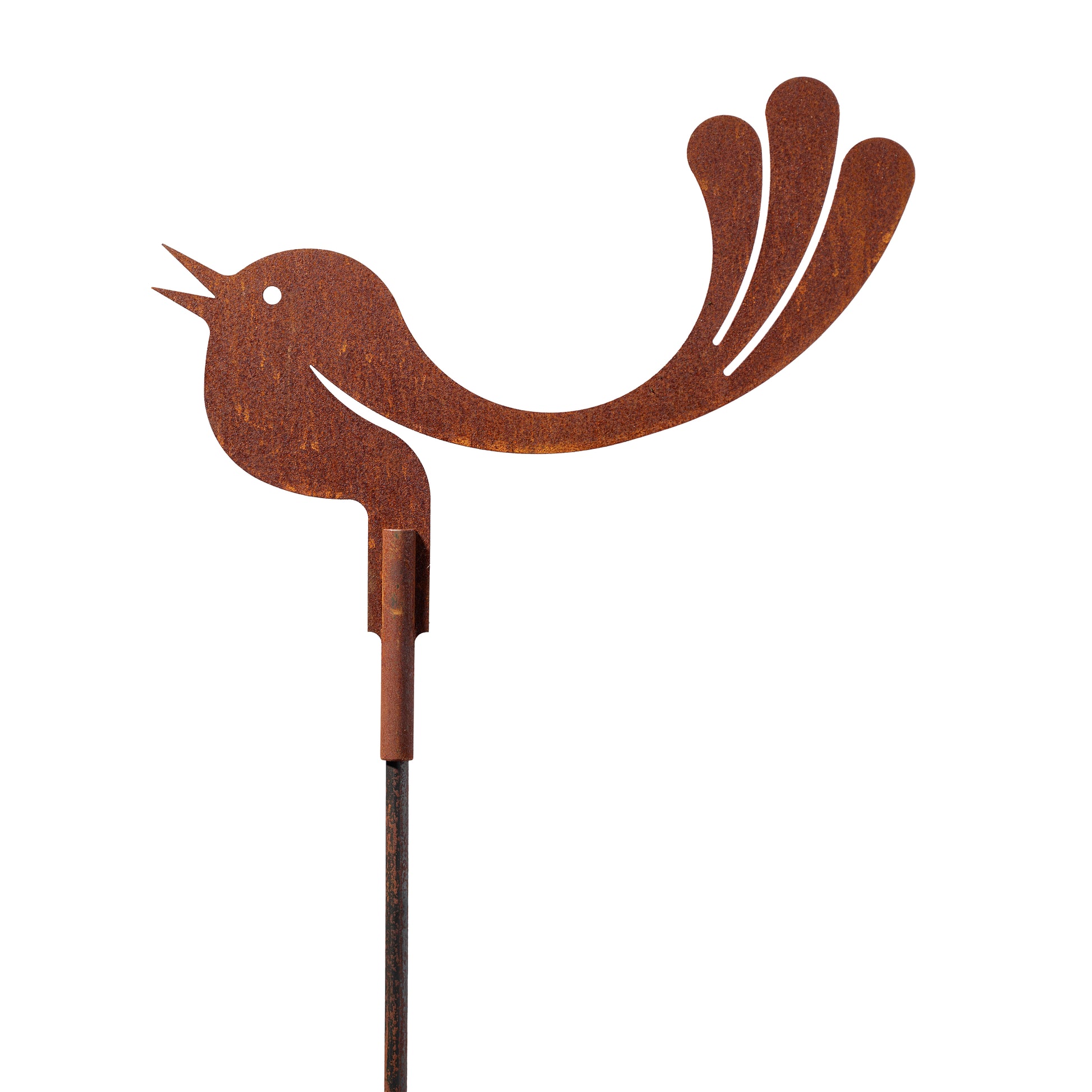 Unser drehbarer Vogel aus Cortenstahl ist eine besondere Gartendeko, die Eleganz und Leichtigkeit verbindet. Dank einer Kugel zwischen Vogel und Stab dreht sich die Figur bei (starkem) Wind oder kann händisch ausgerichtet werden. Aufgrund der Gewichtsverteilung richtet sich der Vogel auch nach dem Drehen immer wieder in die Nullposition aus.