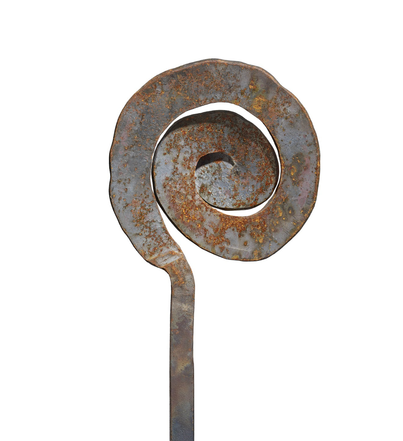 Die Oberfläche ist aus Stahl roh. Wenn der Pflanzstab Witterungsbedingungen ausgesetzt ist, fängt die Oberfläche an zu rosten. Der natürliche Prozess führt zu einer Patina, die den individuellen Charakter des jeweiligen Stücks verstärkt.