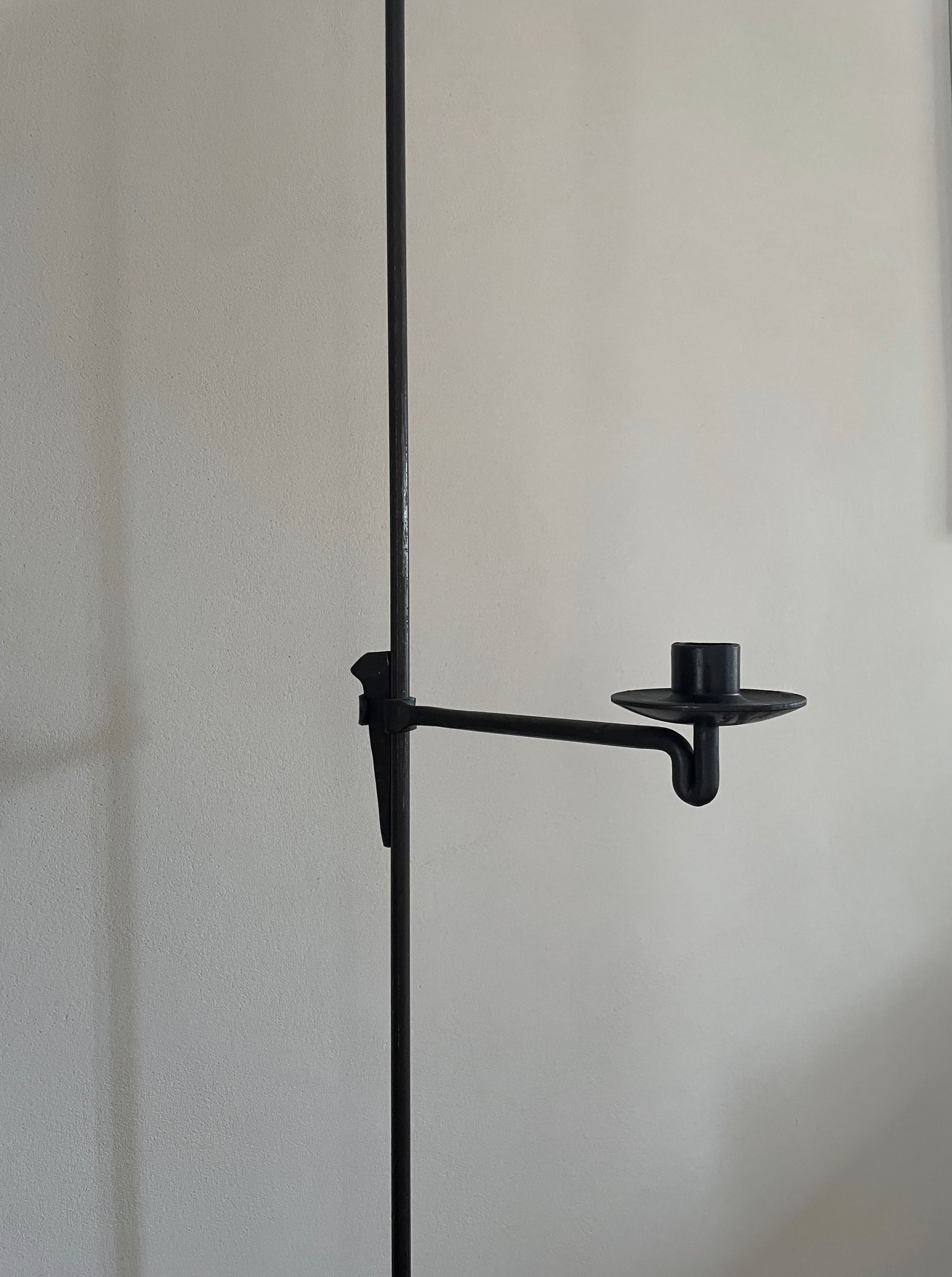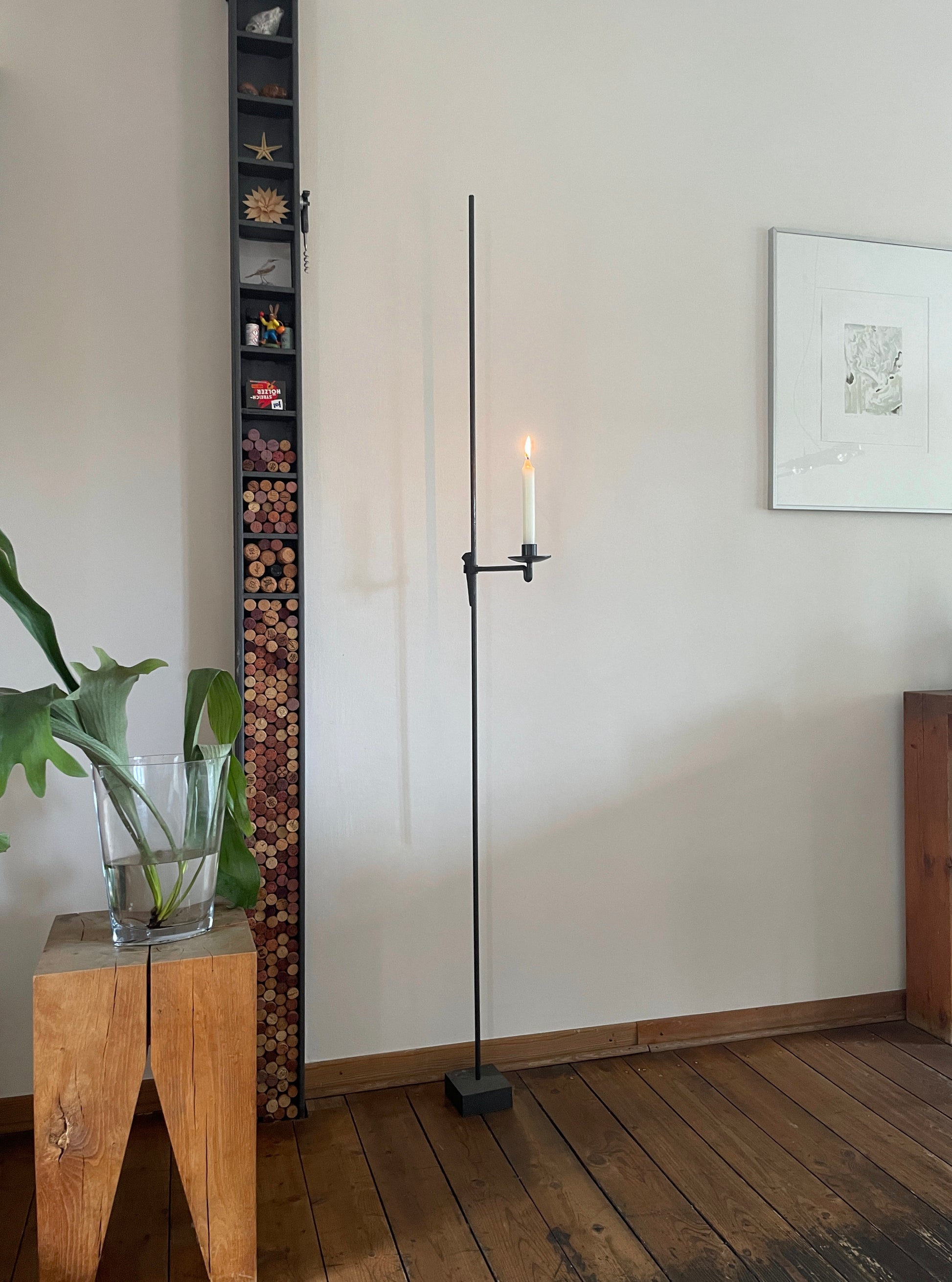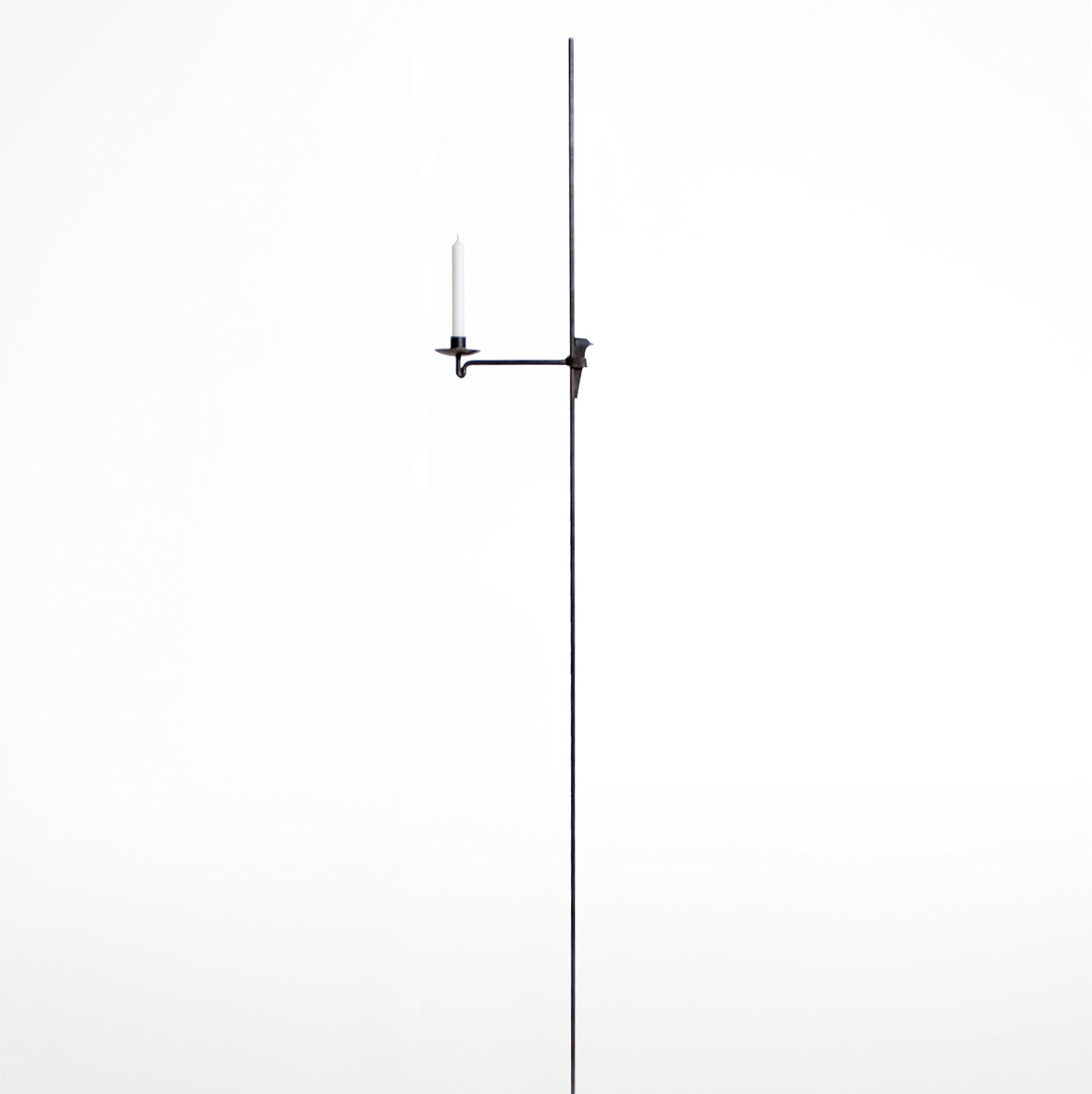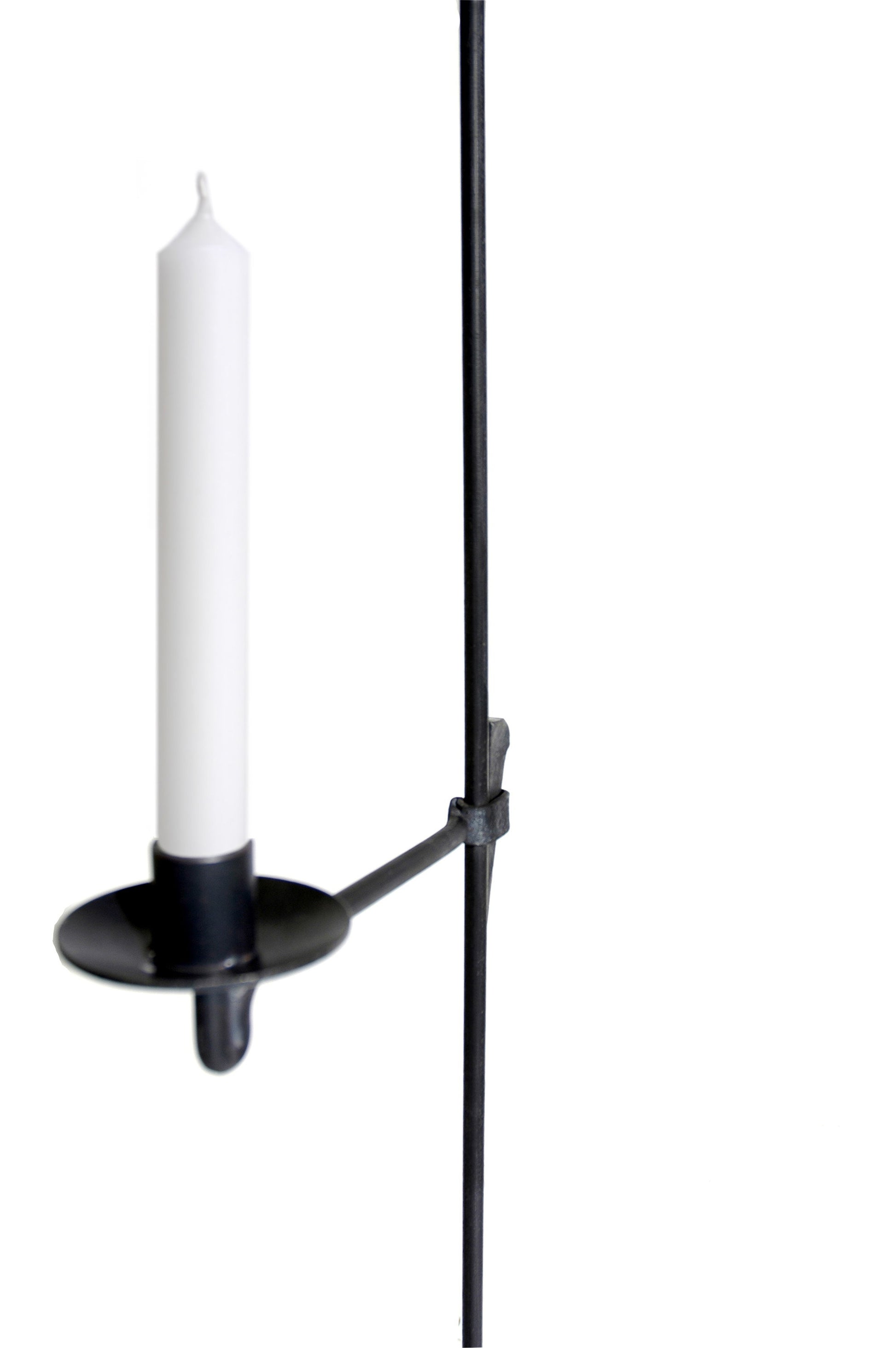 Ein Rundstab mit stabilisierendem Sockel, an dem mittels Keil ein verlängerter Kerzenhalter befestigt werden kann. Die Höhe des Kerzenhalters kann so selbst bestimmt werden.